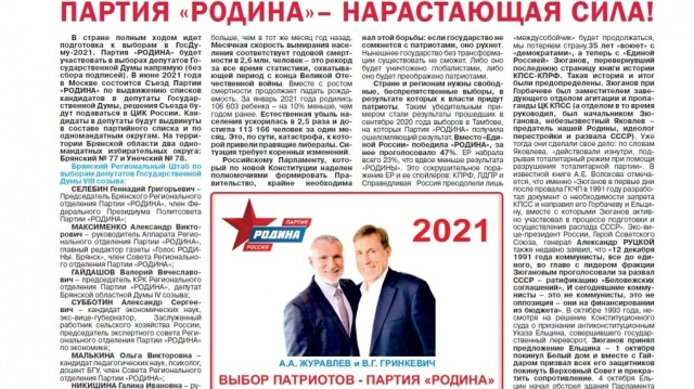 Свежий выпуск газеты можно читать по ссылке «Голос РОДИНЫ. Брянск»