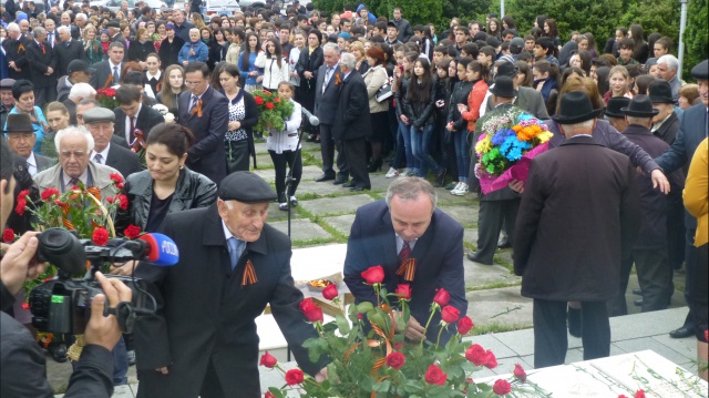В этом году, пожалуй, как никогда, бросалось в глаза, что чегемцев, переживших ту страшную войну, осталось не так уж и много. Сами ветераны говорят, что многие из них не смогли прийти на празднование Дня Победы по состоянию здоровья - годы свое берут. Ветеранов, пришедших к месту проведения мероприятия можно было пересчитать по пальцам. Торжественный митинг открыл глава Чегемского муниципального района Каншоби Ахохов, напомнивший присутствующим, что наша святая обязанность и наш священный долг - сохранить в сердцах послевоенных поколений память о той страшной войне. Постоянно напоминать, особенно подрастающему поколению, что нынешнему мирному небу над головой все мы обязаны нашим дедам и прадедам, сумевшим спасти страну от коричневой чумы. Ведь не случайно многие страны бывшего Варшавского договора в последнее время развязали целую кампанию против захоронений и памятников советской эпохи.