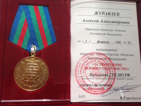 Алексей Журавлёв награждён медалью Минобороны России