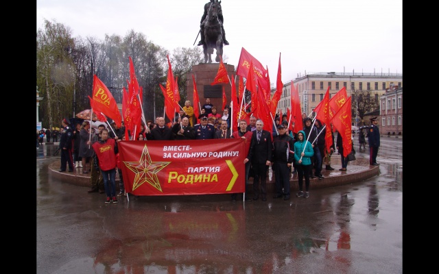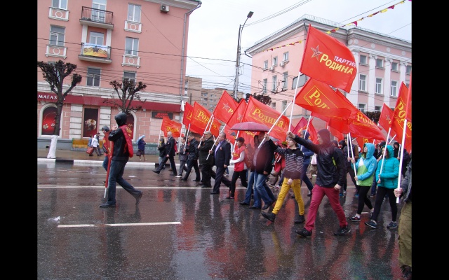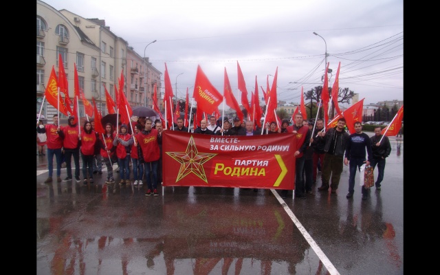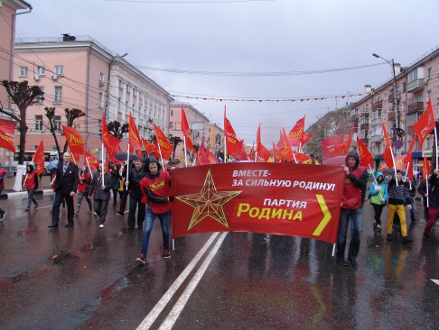 Первая среди непарламентских партий была представлена колонна партии "РОДИНА". Социал-патриоты прошли с растяжкой "Вместе за сильную Родину!" и с лозунгом "Партия РОДИНА – партия трудового народа". Звучали и другие лозунги. Во время шествия рязанцы горячо приветствовали социал-патриотов, которые раздавали всем желающим георгиевские ленточки и праздничные флажки с партийной символикой.